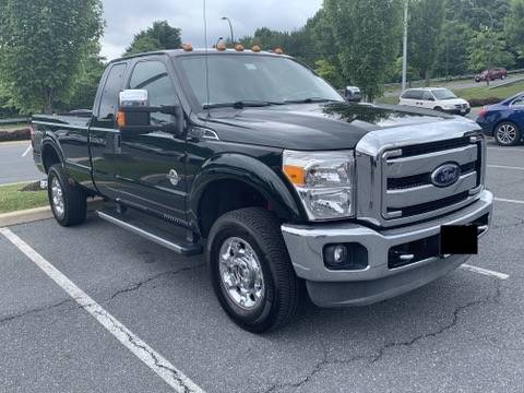 2013 Ford F-350 Super Duty Pickup truck, 6.7L V-8 turbo diesel, AC, XLT Premium trim, Preferred Equipment package, Cruise control, tilt wheel, chrome clad aluminum wheels, intermittent wipers, Six speed automatic, FX-4 off road pkg with skid plates, Supercab (2 full 2 half doors), steel color cloth interior, factory fog lamps,158” wheelbase, 8 ft bed, 4 wheel ABS, Driver/passenger and canopy airbags, privacy glass, Ford Factory chrome running boards, electrically adjustable gas & brake pedals, Green Gem Metallic exterior (color no longer available) factory chrome pkg, engine block heater, 4x4 (knob control), AM/FM/CD/MP3/Sirius radio with Microsoft Sync tech, Electric windows, heated electric telescoping trailer mirrors, Elec door locks, 3.55 electronic locking axle, 6-way power drivers seat, snow plow pkg, receiver and gooseneck hitches, 11,500# GVWR pkg, trailer tow pkg, factory Trailer brake wiring/controller, alarm system, remote keyless entry, nearly new Michelin tires, auto and manual locking hubs, Rhino spray-in Bed liner, dual alternators, cab lights, keypad door locks, cloth and Weather Tech custom vinyl floor mats, car cover included. 2 hitch drawbars incl, 65,000 miles - Md State inspection and ready to go Like new - beautiful truck - Very well maintained/all receipts garaged Original owner, $35,000