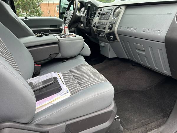 2013 Ford F-350 Super Duty Pickup truck, 6.7L V-8 turbo diesel, AC, XLT Premium trim, Preferred Equipment package, Cruise control, tilt wheel, chrome clad aluminum wheels, intermittent wipers, Six speed automatic, FX-4 off road pkg with skid plates, Supercab (2 full 2 half doors), steel color cloth interior, factory fog lamps,158” wheelbase, 8 ft bed, 4 wheel ABS, Driver/passenger and canopy airbags, privacy glass, Ford Factory chrome running boards, electrically adjustable gas & brake pedals, Green Gem Metallic exterior (color no longer available) factory chrome pkg, engine block heater, 4x4 (knob control), AM/FM/CD/MP3/Sirius radio with Microsoft Sync tech, Electric windows, heated electric telescoping trailer mirrors, Elec door locks, 3.55 electronic locking axle, 6-way power drivers seat, snow plow pkg, receiver and gooseneck hitches, 11,500# GVWR pkg, trailer tow pkg, factory Trailer brake wiring/controller, alarm system, remote keyless entry, nearly new Michelin tires, auto and manual locking hubs, Rhino spray-in Bed liner, dual alternators, cab lights, keypad door locks, cloth and Weather Tech custom vinyl floor mats, car cover included. 2 hitch drawbars incl, 65,000 miles - Md State inspection and ready to go Like new - beautiful truck - Very well maintained/all receipts garaged Original owner, $35,000