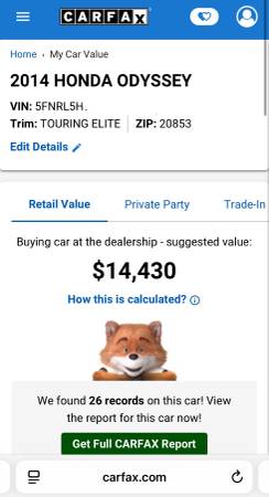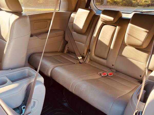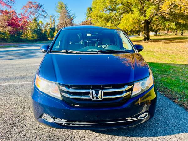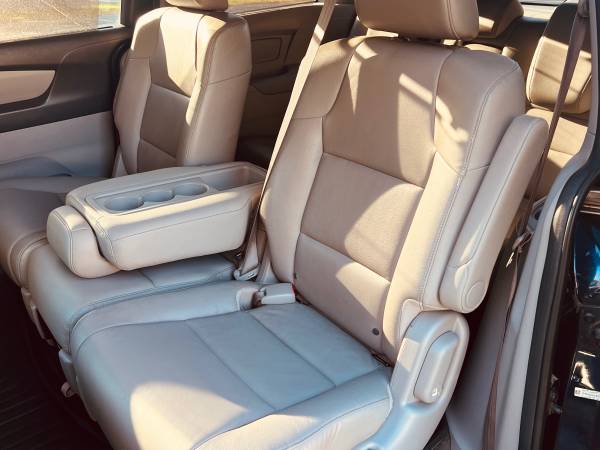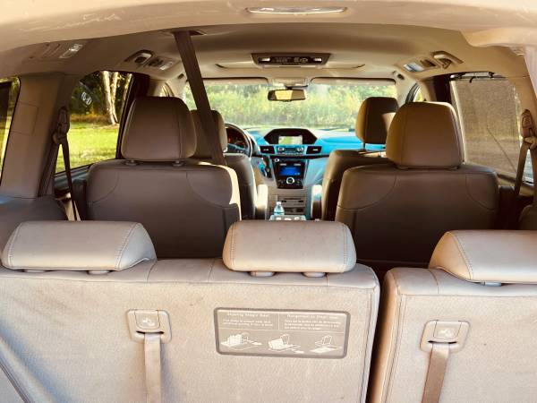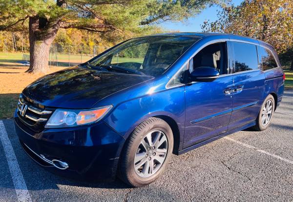 Selling the most sought after top of the line 2014 Honda Odyssey Touring with obsidian blue pearl exterior and truffle leather interior. It has only 108k miles. No mechanical issues and it drives very smooth. Clean title and history. Comes fully loaded with 8 leather seats, navigation, keyless entry, back up camera, side camera, rear entertainment system, dual power sliding doors and tailgate, try zone climate control, Bluetooth, XM radio, MP3/Auxiliary input, USB, privacy shades all around, power doors, side curtain airbags with roll over sensors and plenty of room. As reliable as Toyota Sienna, Highlander, Camry, Corolla, Accord, pilot. Serious buyer with cash only.