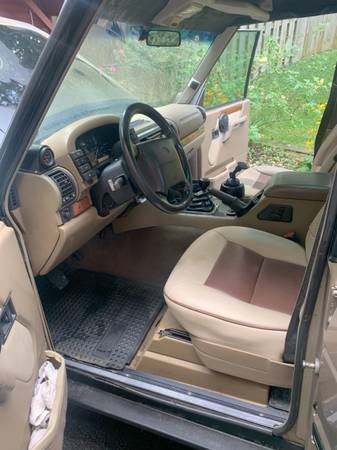 1998 Disco 1 LHD model with 300 tdi DIESEL engine and MANUAL 5-speed. Less than 50K miles on engine conversion. I bought this 2 years ago, it came from NC with zero rust. In the last 1,000 miles, new: tires and suspensions; starter, battery and alternator; exhaust system with cat converter; windshield; fuel lift pump and fuel filter, air filter, oil filter. Replaced: valve cover gasket, oil pan gasket, left axle housing seal, air filter, right rear ball joint, clutch slave cylinder, transfer case seal, rocker cover, front sunroof gaskets, clock spring, right front axle swivel seals. Also did wheel alignment, sealed roof leaks, fixed leak in windshield washer bottle, new headlight bulbs, fixed front windshield washer motor, a few more odds and ends. AC works fine, rear windshield wiper motor doesn't. I have the gaskets for the rear sunroof if you want to tackle that. It was a fun project, it drives well now and cruises at 65, but I just don't drive it enough. No silly offers please.