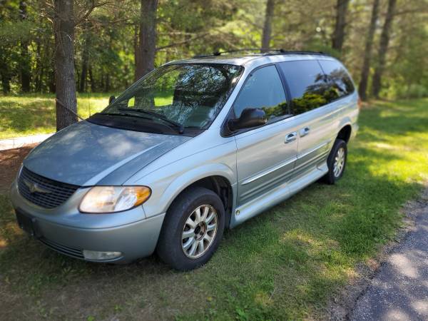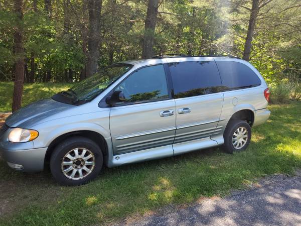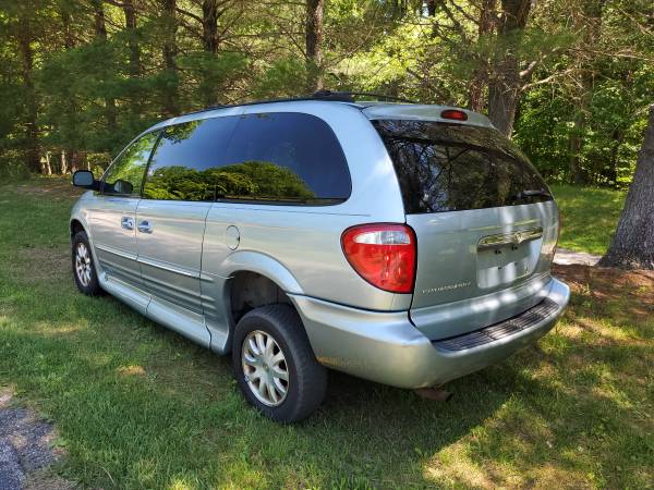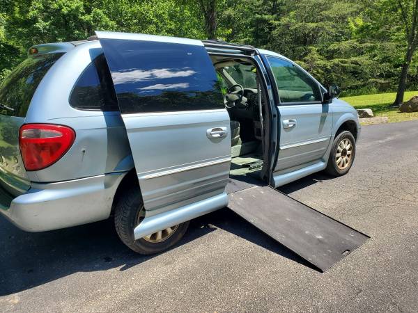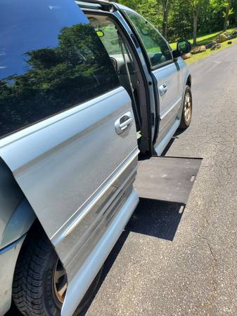 Here is nice looking 2003 Chrysler town and country handicap wheelchair van with side ramp, engine and transmission are excellent, front and rear A/C blows nice cold, couple days ago new gasket on exhaust manifold, new wipers,new tailgate struts, fresh oil change, no leaks, no dents, everything is up to date...selling cheap because of rust underneath, it won't affect driving but won't pass Maryland state inspection...miles r nigh, 240k, but drives without any issues, sliding door and ramp works both electric and manual by hand....clean title, call me at show contact info