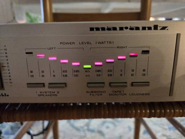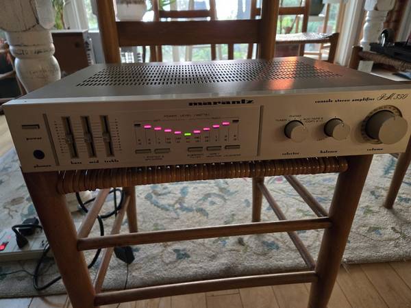 Rare vintage Hi-Fi Marantz PM-350 Console Stereo Amplifier. Champagne Brushed Metal. Professionally fully cleaned and serviced. All controls and switches have been cleaned and lubed. All lights have been replaced as needed. New power cable installed. Receipt available.