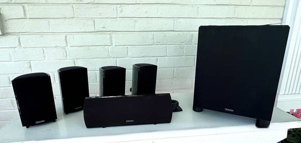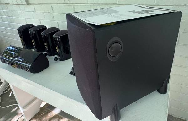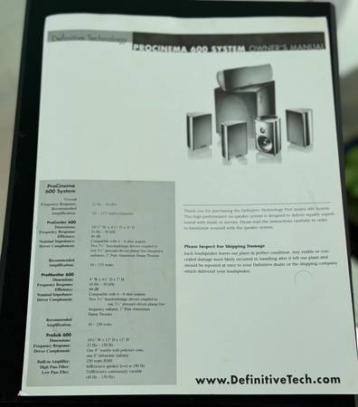 Definitive Technology Procinema 600 System. High performance 6-speaker system. Designed to be used as a 5.1 Dolby / DTS surround sound home theater. 2 Front speakers / 2 side or rear speakers / one...