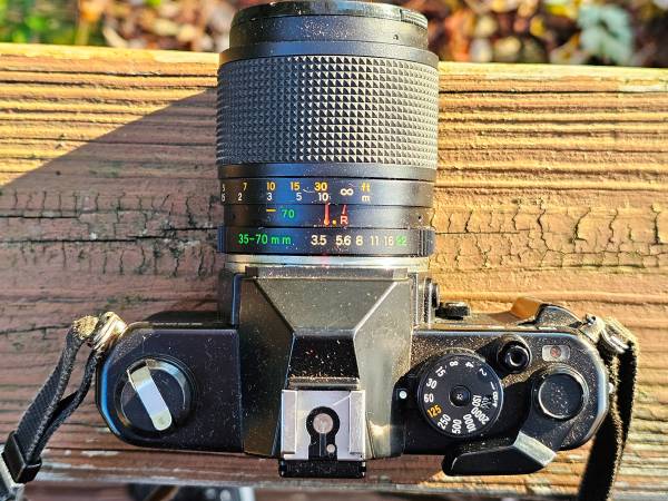 • Manual exposure control with built-in light meter (requires small button batteries for metering only)