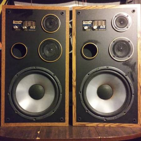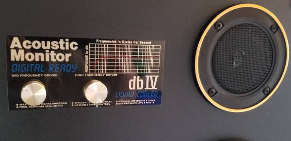 Acoustic Monitor DB IV Hi-Fi Floor 3-Way Speakers 12" Liquid Cooler Specifications Frequency Response: 43 Hz-2 5 KHz Efficiency: 98 db 1w/1m Max Power: 125 watts Program Min Power: 5 watts...