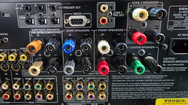 The Integra DTR-5.8 has a seven-channel amplifier section rated at 90 Watts per channel into 8 ohms, and 110 Watts into 6 ohms. With its high-current power supply,