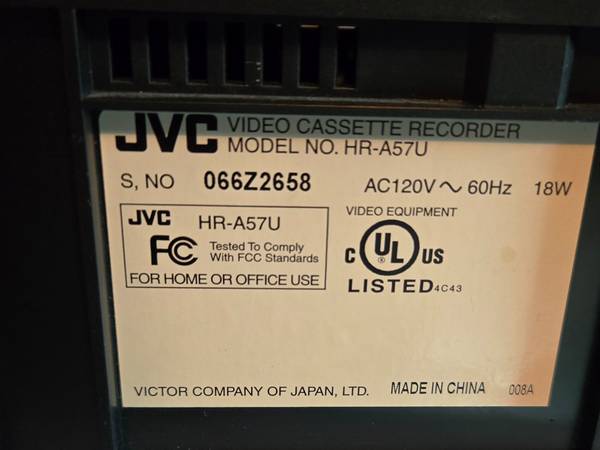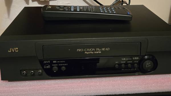 The JVC HR-A57U is a 4-head Hi-Fi stereo VHS VCR known for its reliable playback and recording quality, known for its high-quality audio and video playback.
