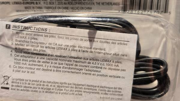 Intended for use with any Lemax accessory that operates on 4.5 V DC from a Power Adaptor