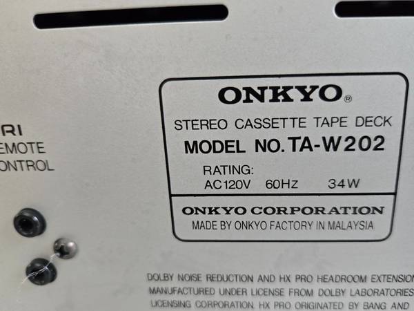 ONKYO TA-W202 Double Cassette Tape Deck Dolby Player Recorder