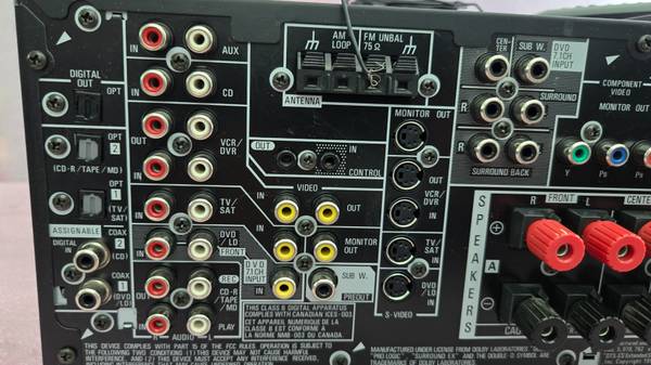 To complete the big picture, you get Dual Surround Back terminals for 7.1 speaker set-up and 7.1-channel inputs, plus component video switching (2 inputs/1 output) and 5 digital inputs / 1 digital output (optical).