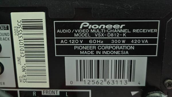 The VSX-D812 delivers 100 watts x 2 (stereo) and a full 100 watts x 6 (surround), with pre-amp output for all channels.