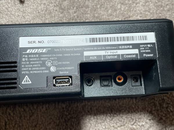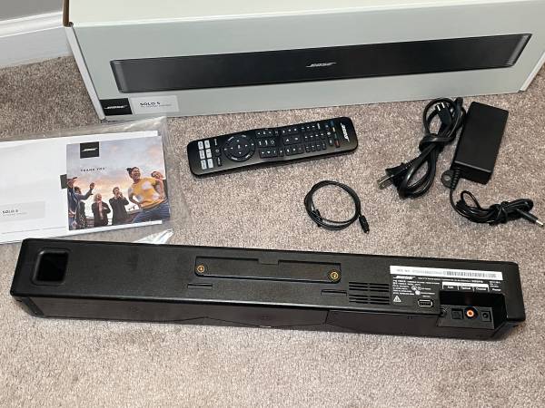 Hi. I'm selling a Bose Solo 5 TV Soundbar Sound System with Universal Remote Control. The soundbar is in clean/like new, working condition It comes with a box, power cord, remote, and an optical...