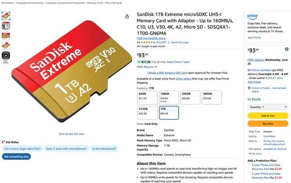 SanDisk 1TB Extreme Micro SD Memory Card / SDXC Brand NEW -...