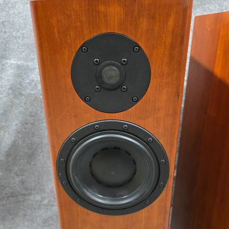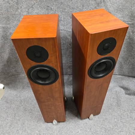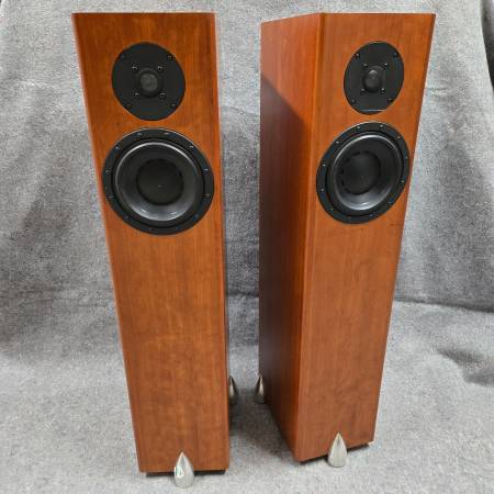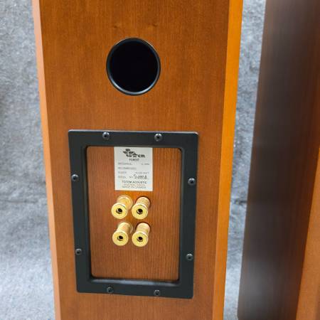 The Totem Acoustic Forest Cherry Tower Speakers are a stylish and high-end pair of floor-standing speakers designed for indoor use in your home. These rectangular-shaped speakers feature a 6.5-inch driver size with a 2.0 channel system configuration, perfect for delivering crisp and clear audio. Made of wood with a cherry color finish, these speakers from Totem Acoustic are wired with banana jack audio inputs and have an impedance of 8 ohms. Originating from Canada, these front right and left speakers offer a premium audio experience for any home entertainment setup.