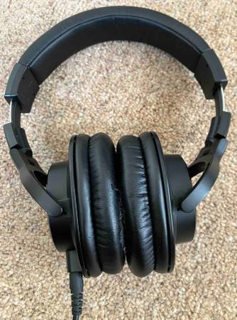 For sale is a set of Audio Technica ATH-M40X wired studio headphones in used but working condition, with a soft carry bag. The earcup padding has normal wear from use, but this does not affect the quality of the sound at all. Everything still comes through crystal-clear and with great response throughout its range. Cash-Venmo-Cashapp all accepted.