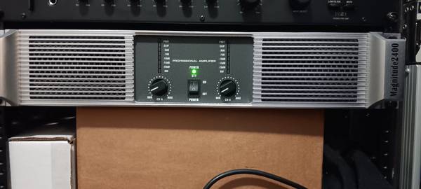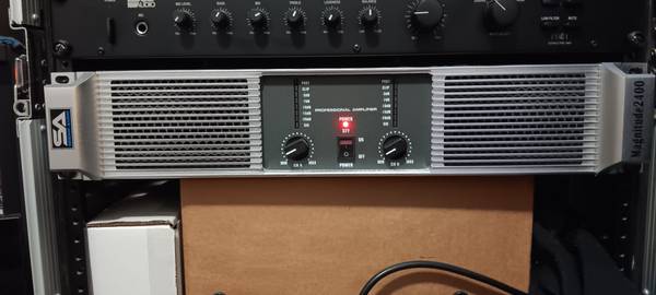 Like new with factory box and book. Barely used. 800 watts rms per channel @ 8 ohms. 1260 per channel @ 4. 1600 per @ 2 ohms. 2500 in mono @ 8 ohms..