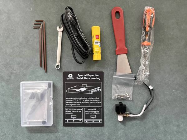 Comes with all pictured accessories as well as one extra build plate sheet.