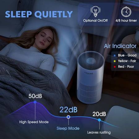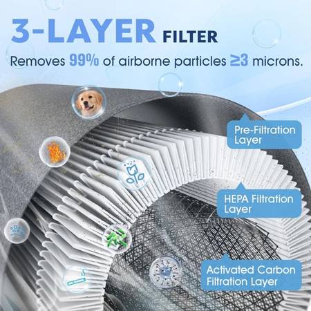 Superior Filtration - The filter cartridge consists of 3 layers of filters, which can filter particles as small as 0.03 micron and PM 2.5 air pollution, removing 99.98% of airborne particles, effectively improving indoor air quality