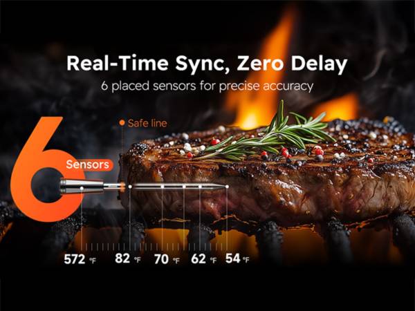 600FT Long-Distance Control with Dual Alerts: Take full control of your grilling from up to 600 feet away! With dual alerts (app and Repeater), you’ll never miss a crucial moment-your meat is always on track for perfection, even if you're far from the grill
