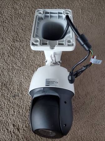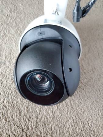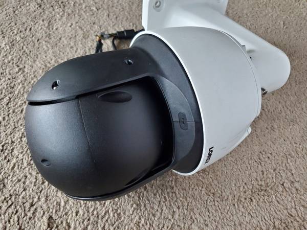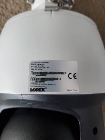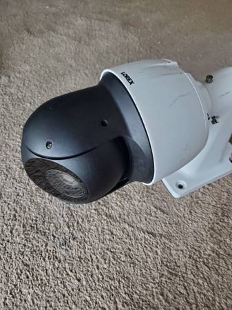 Lorex 2K Outdoor IP Camera with 12x Optical Zoom. Shows signs of use and some scratches. Model: LNZ44P12-C