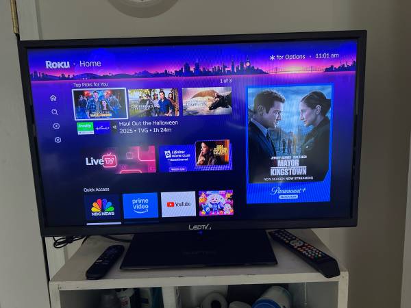 Brand new Roku 4K Streaming stick with an old 32 inch Sceptre HDTV. TV has nothing wrong other than appearance of a fine vertical line ( last photo). It’s there almost from beginning and hardly noticeable. Therefore selling it cheap as a package.