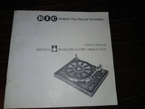 Original Owners Manuals for the turntable and cartridge are included.