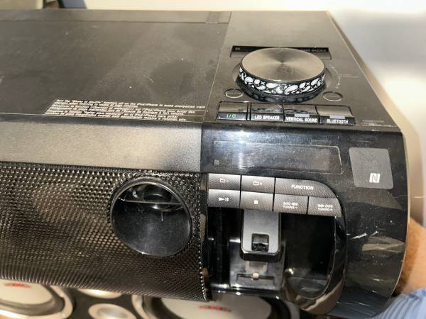 Sony GTK-XB7 party speaker for sale. Sounds amazing and gets super loud — clean highs and deep bass. Works perfectly, Bluetooth and all inputs tested. Has LED light effects that flash with the beat....