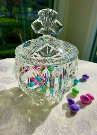- Vintage Lidded Glass Candy Bowl (4" x 4" ( 6.5 w/ lid)