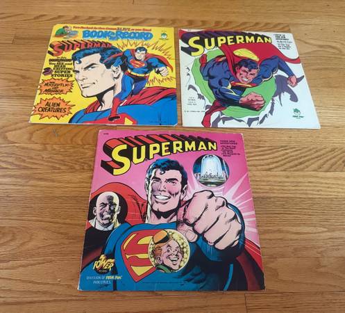 Attention Superman fans!! I have 3 vinyl albums featuring 9 stories. Two are from 1978 and the other 1975. One has album with two stories that are also depicted in comic book style All in very good...