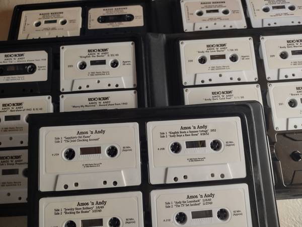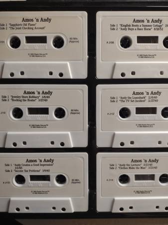 Lot of 29 vintage and classic cassette tapes (35 episodes) features the beloved classic comedies of Amos N' Andy, known for their witty humor and character-driven storylines. This collection includes recordings from 1938 through 1952. Released by Radio Reruns Inca at various times throughout the 1960s and 1970s.