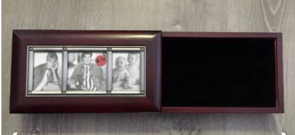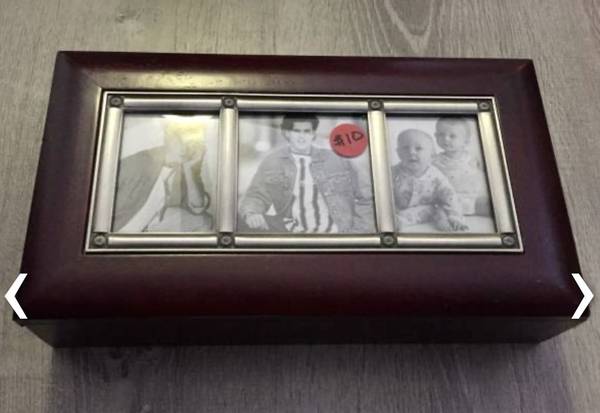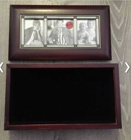 Brown wood photo box for $10. Lid slides off. See the "more ads by this user" link for more items I am selling. ~ Kathy