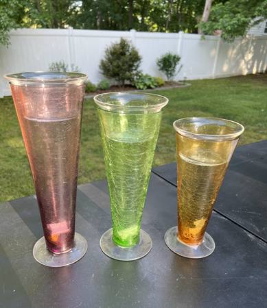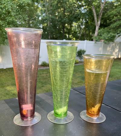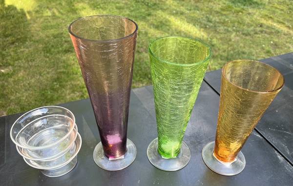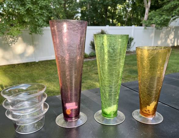 Colorful glass candle holder/vase set for $10. Clear glass liners remove to use as vases. *I lowered the price by $5 for the set, due to a tiny chip in one clear piece. *See the "more ads by this...