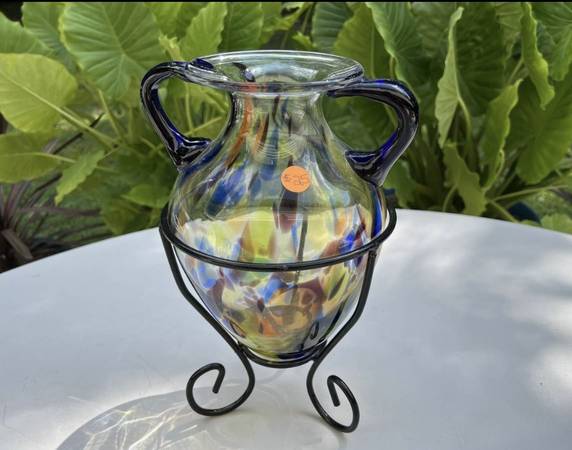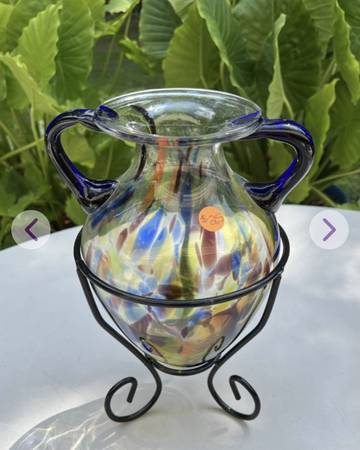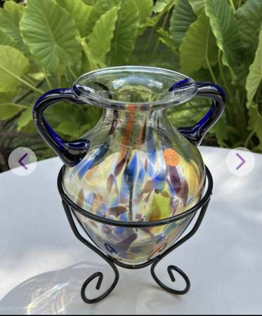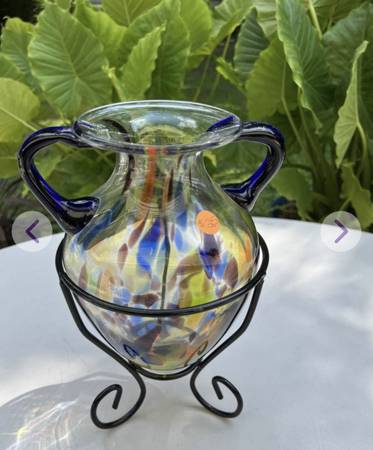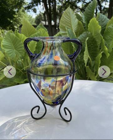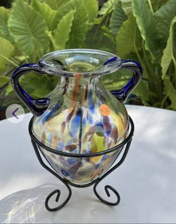 Glass vase with metal holder for $25. Measures: 12 1/2" high. *See the "more ads by this user" link for more items I am selling. ~ Kathy