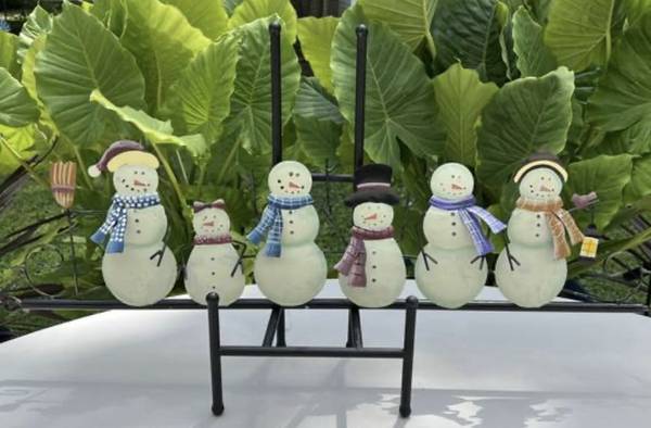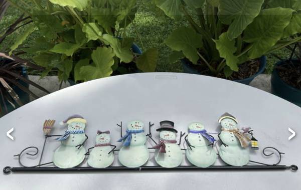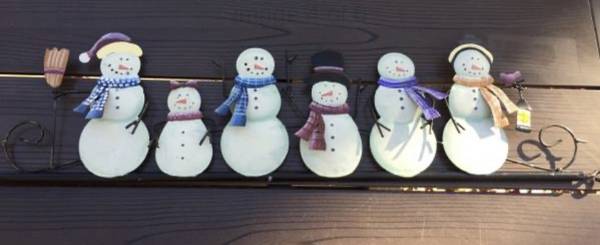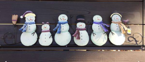 6 metal snowmen for $10. Measures: 29" long x 7 1/2" *Metal stand is for photo taking purposes only, however it does have the bottom metal bar. Click the "more ads by this user" link for more items...