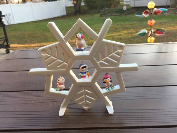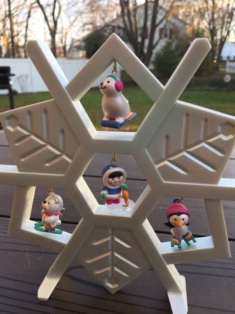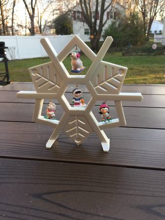 Wee Winter Friends snowflake stand with mini winter friends for $10. Measures: 8" wide x 7" high. View the "more ads by this user" link for more items I am selling. ~ Kathy