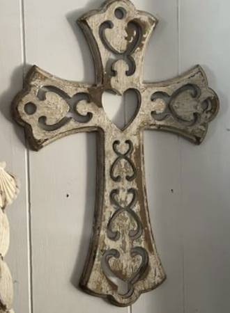 Wall cross that hangs on the wall for $20. Measures: 22" high x 15" wide See the "more ads by this user" link for more items I am selling. ~ Kathy