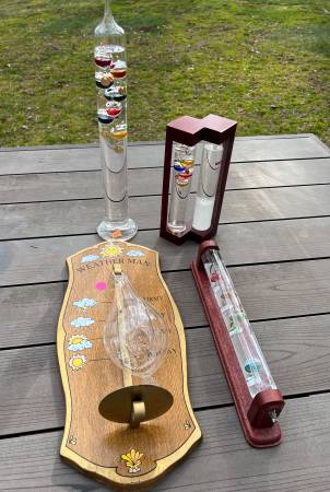Barometers (temperature) for $15 each. I just added the tall glass and wood back barometers, so need to check prices. See the "more ads by this user" link for more items I am selling. ~ Kathy