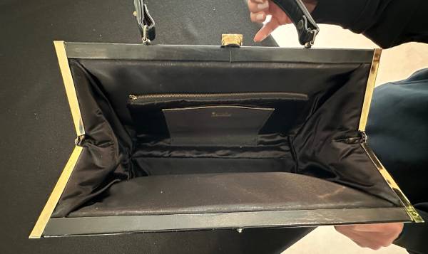 BLACK FRAME &HANDLE WITH GOLD TONE ACCENTS &SNAP CLOSURE