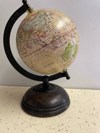 9” Classic tabletop globe with wooden base. Pick up from College Park. Thanks!