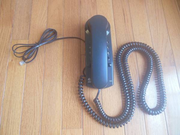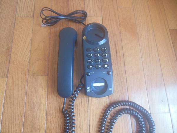 AT and T Design Line 140 Touch Tone Desk and Wall Mountable Corded Phone. Handset coiled cord is 84 inch long. Hardly used. Like new $9 see pictures