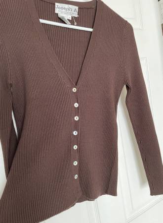 Asking $35 obo Selling beautiful, classy and elegant looking cardigan / sweater Brand new never worn Front open - buttoned, brown color Size small Very comfortable, warm and classy
