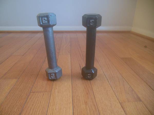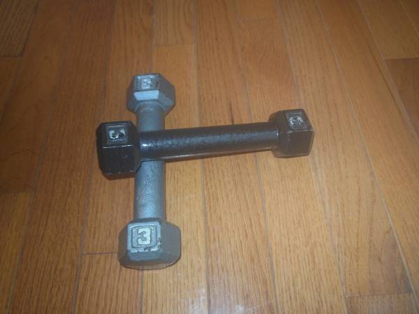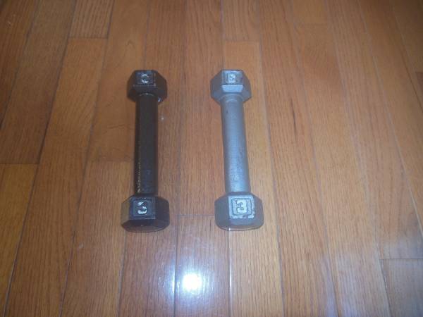 2 X 3.0 lb Cast iron Dumbbells/ Hand Weights. Good condition. 2 for $4. See pictures