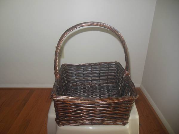 1. Like new. Large 16" Wicker Basket with handle. Attractive and sturdy. $5
