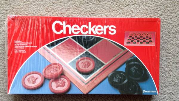 Asking $9 obo Checkers: Pressman board game. Includes folded checkerboard, 24 red and black checkers. New condition. Box is still in the shrink wrap - shrink wrap has been opened from one side. The...