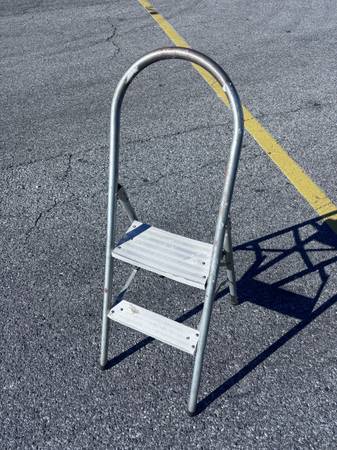 Bottom step is 10 inches from the ground Top step is 20 inches from the ground Total length is 40 inches when folded flat