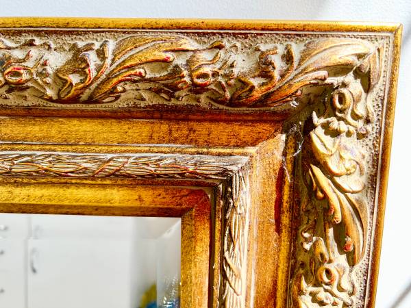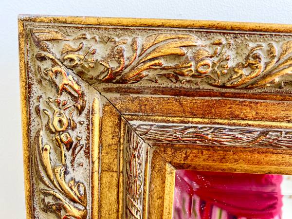 This beautiful mirror can be hung horizontally or vertically