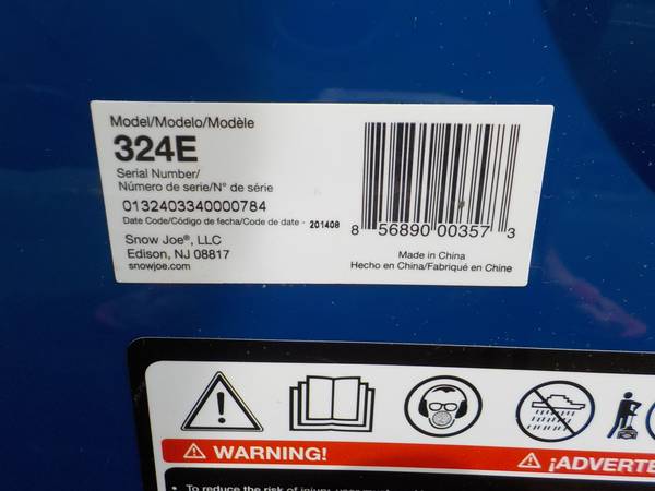 SNOW JOE PLUS 11-INCH 10-AMP ELECTRIC SNOW SHOVEL WITH LIGHT. MODEL #324E. COMES WITH OPERATING MANUAL AND BAG. NEW $85