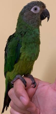 Rare Dusky Headed Conure. He is DNA tested to be a male and is tame. It has these most beautiful intense eyes, and it looks like a mini macaw without the price tag. Eats Roudybush Pellets, cockatiel seeds, veggies, and fruits, and he is about 3 years old. $600. Tame and will step up once he gets to know you.