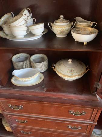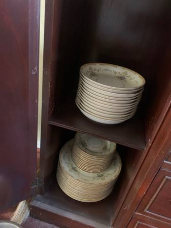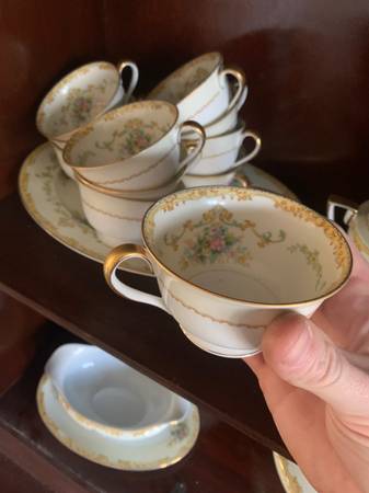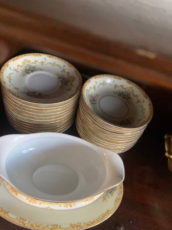 Hi I have this beautiful dinner set for many people 10-12 people with dishes 12 tea cups and tea dishes too and 12 equally sized bowls, a server with a lid gravy and serving containers with lid several platters approx 12 small dishes, plates at 5” 12 large dishes, plate set at 11” 12 or more medium bowls about 7” or so wide 12 or more medium plates /dishes about 7-8” wide all matching plate set bowls serving trays see pictures, use for entertaining thanksgiving or Christmas!