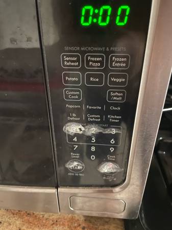Kenmore stainless steel microwave in good condition. Please note that A few button signs were faded away. Dimensions are 22” * 16”* 12”
